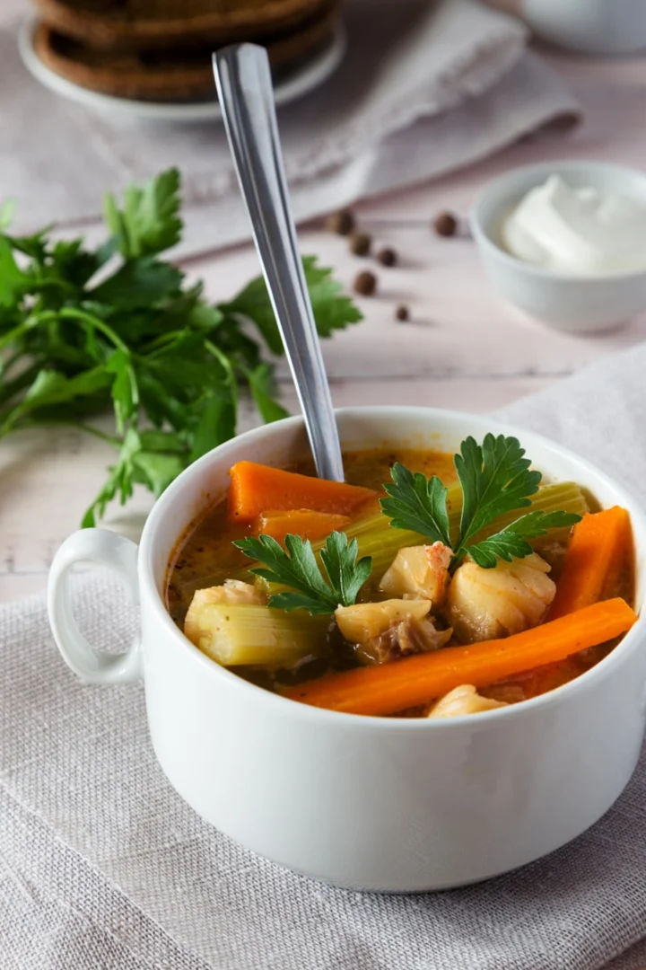 • Obed: Rybacia polievka s morskými plodmi – 13 g