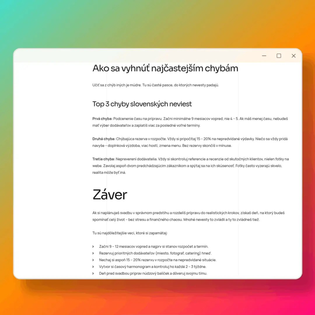 Tvoríme obsah, ktorý Google aj ľudia považujú za dôveryhodný. Využívame dáta zo SERP, FAQ sekcie a zhrnutia článkov pre vyššiu relevanciu, lepšie pozície a dlhodobý rast autority.